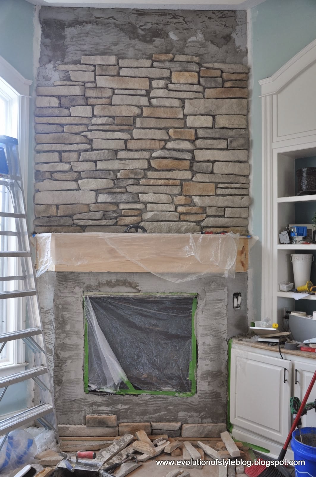 What do you think in terms of grout? We could grout it the same color as the mortar that I used to put up the stone (which you can kind of see in between the stone now). Or do I continue with my plan to grout it like what I saw (and loved) in the brochure?