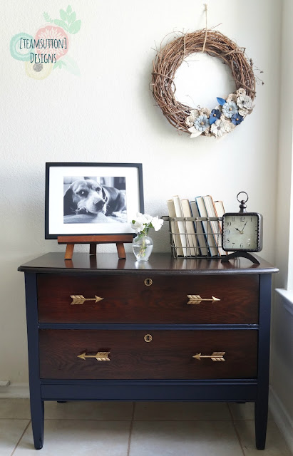 Look at this handsome guy from The Painted Drawer. The stained drawers maintain the mid-century feel, and the painted frame gives it a great update. So clean and classic, don’t you think?