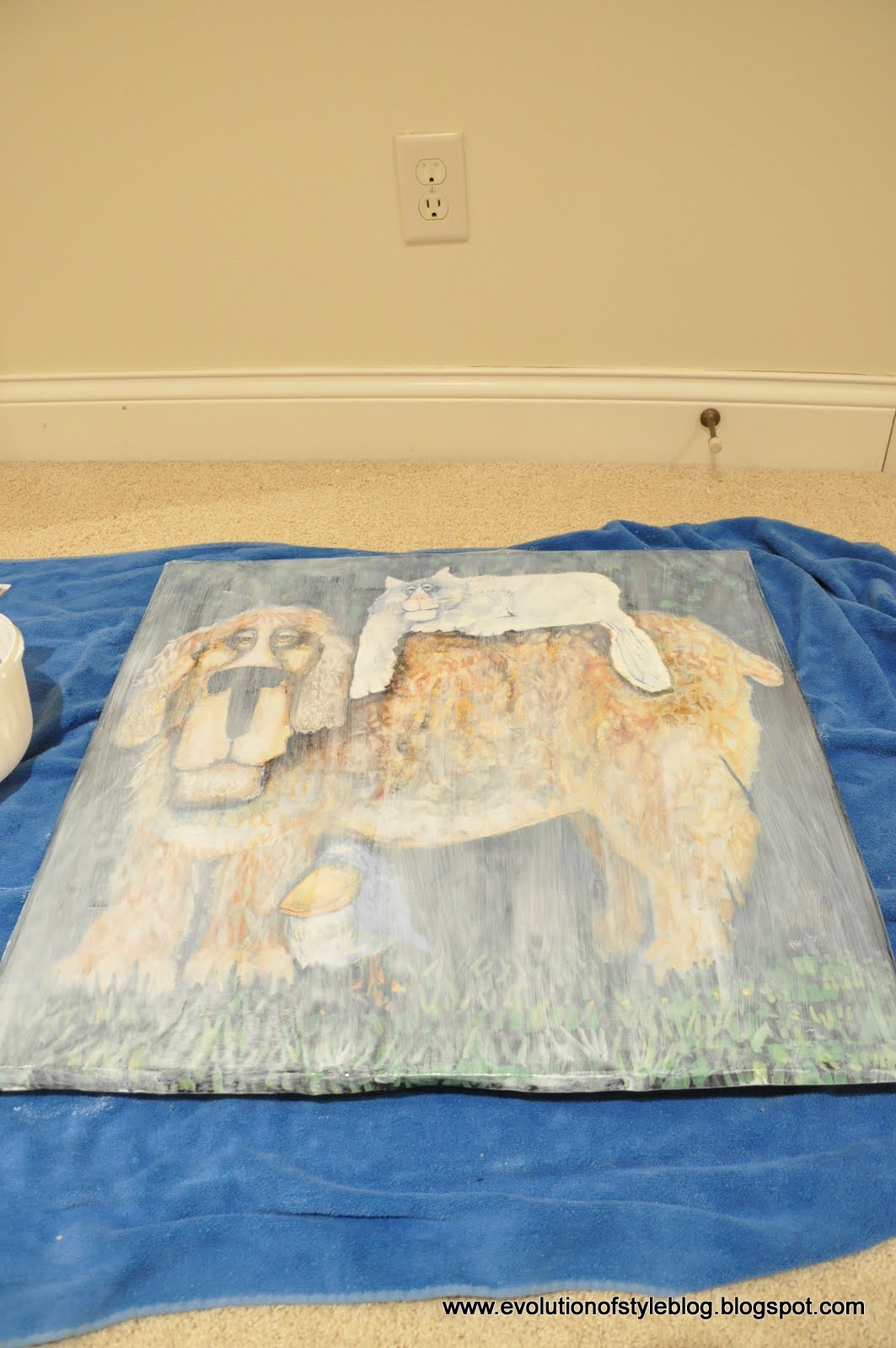 Then I placed the print over the top, and smoothed it out. If anyone has any tips on bubble avoidance in this process, I’m all ears – it’s tricky.