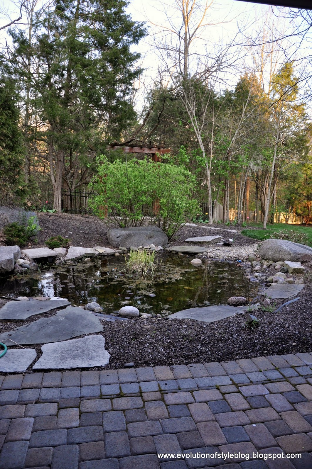 I’ve said it before, and I’ll say it again. Ponds seem like a great idea in theory, but the reality (for us, anyway), is that they are very high maintenance, and never look as good as you think they should. Paver patios on the other hand, much lower maintenance, and a much higher usability factor too.