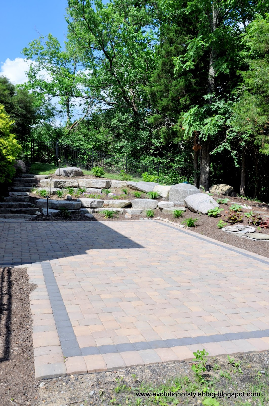 Then there is the beautiful pavers – they even did a border, which I love. And I can’t believe I don’t have a photo of the pavers-in-progress. They were super fast, and knocked this out in a day (maybe two) if memory serves. I can’t even imagine how long it would have taken us if we had tried to do it ourselves.