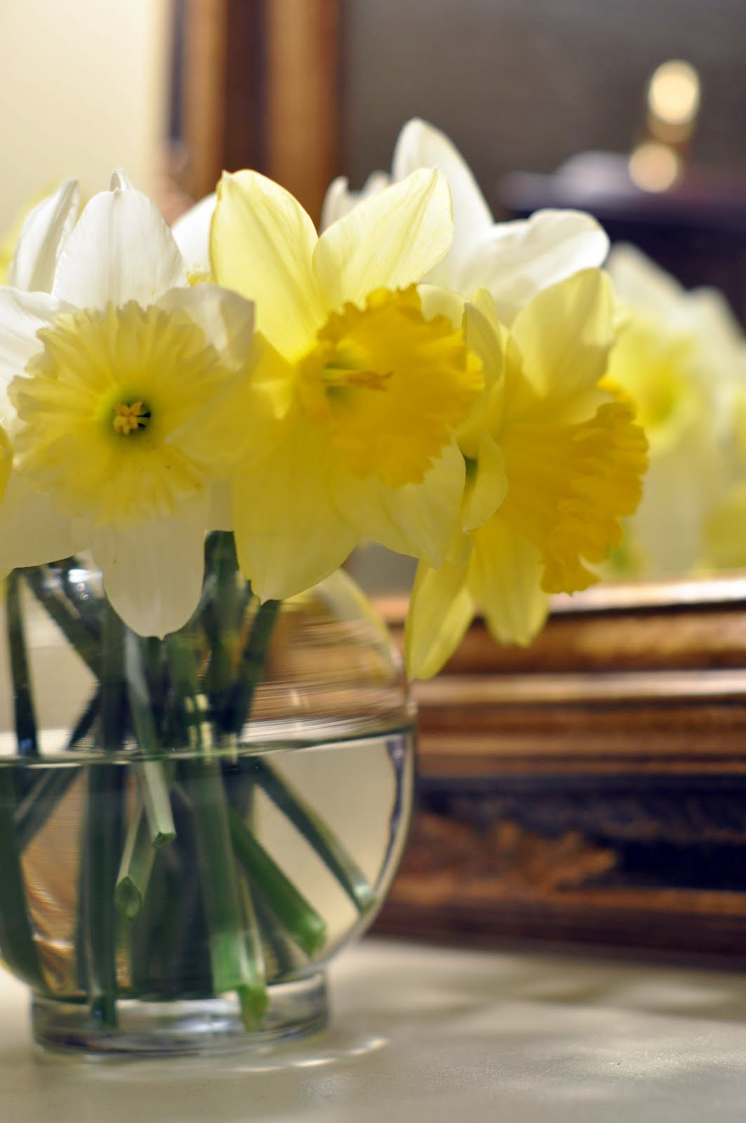 I have been cutting bunches of daffodils and bringing them inside, since they too, have been hanging their heads with all of the cold weather we’ve been getting.