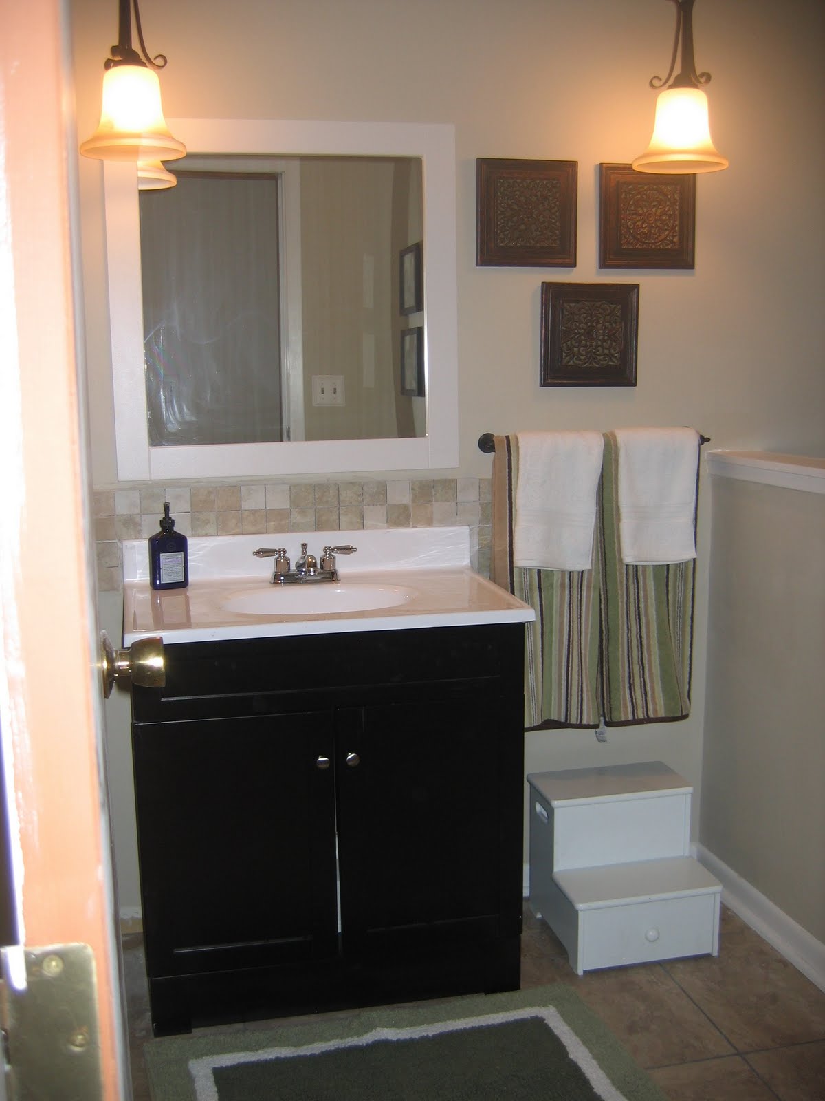 -Added decorative accessories – towels, towel rack, throw rugs, new shower curtain, wall art, etc…