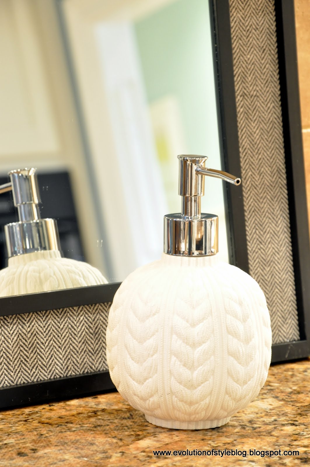 And since I’m a girl that loves a sale, I couldn’t pass up this masculine herringbone patterned mirror and sweet soap dispenser I found on clearance. I had eyed the soap dispenser over the holidays, and am glad I waited, it was $2.98 vs. $9.99 at full price. The mirror was $11.98, and I’m wishing I had picked up the other two to make a trio somewhere. My husband’s office perhaps? He’s in the midst of an organizational kick/redo in that space, and I’m trying very hard to hold my tongue and not be a total control freak be supportive of his design choices.