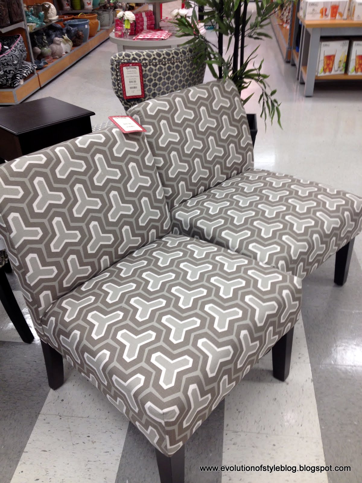 They also had these modern geometric slipper chairs – a pair, no less!