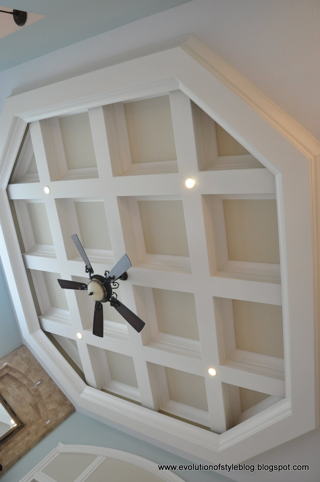 I was debating between two projects: 1) painting the coffered ceiling: