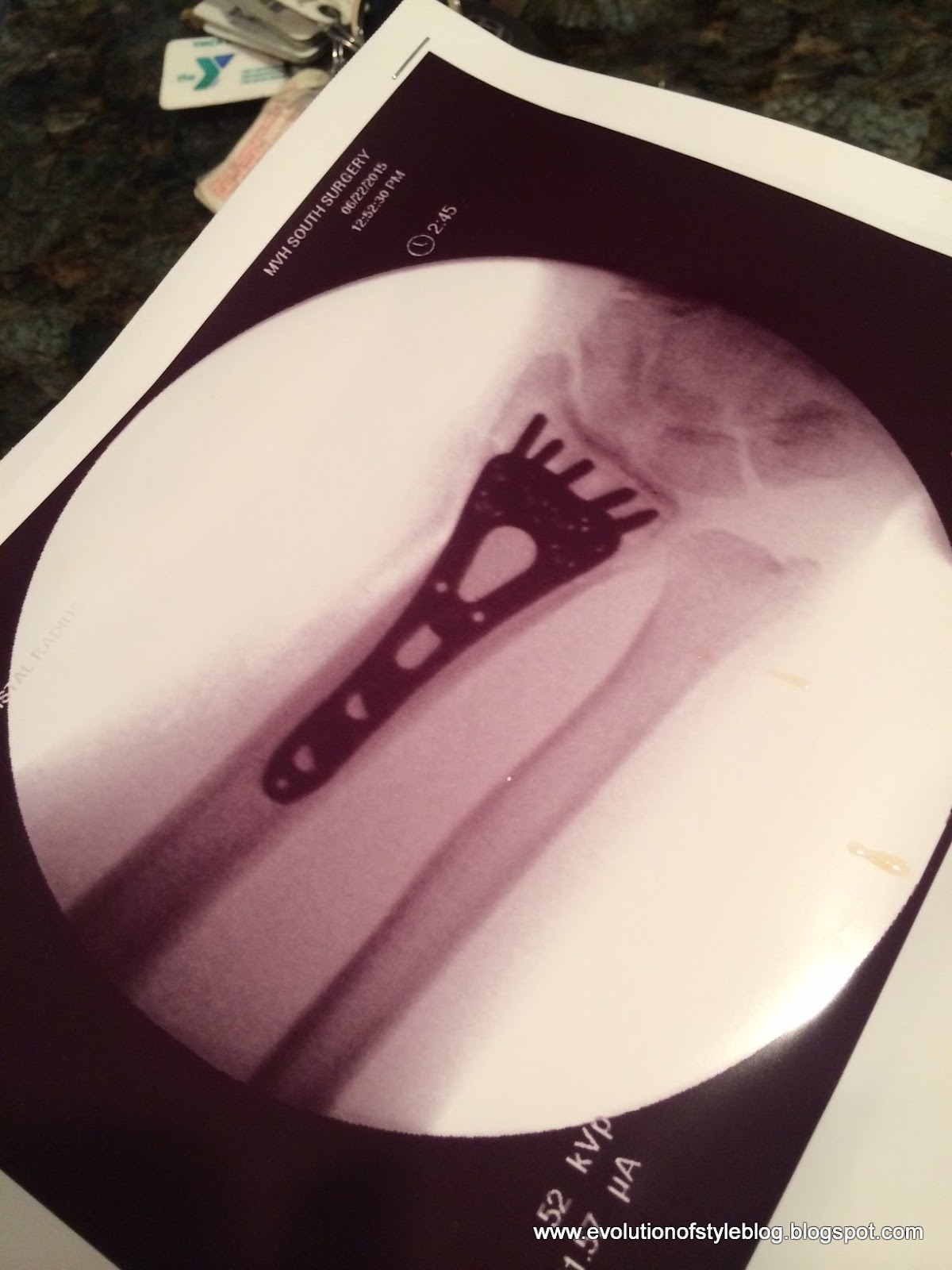 On Father’s Day, my mom was taking a walk (no doubt to increase her Fitbit step count), and tripped on some uneven pavement, shattering her wrist. The doctor said it’s usually the kind of injury he sees in motorcycle accidents. She had surgery on Monday and now will get a special pass to go through the airport metal detectors.