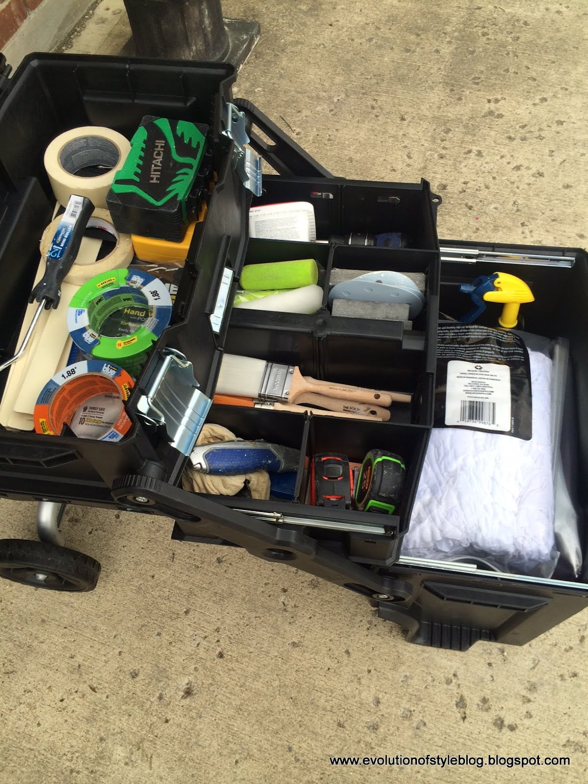 I mentioned that I’m taking on more cabinet painting jobs these days, and needed to get my tools and products organized in a way that also allowed me to transport them easily. Enter awesome Stanley Toolbox (ala Menards).