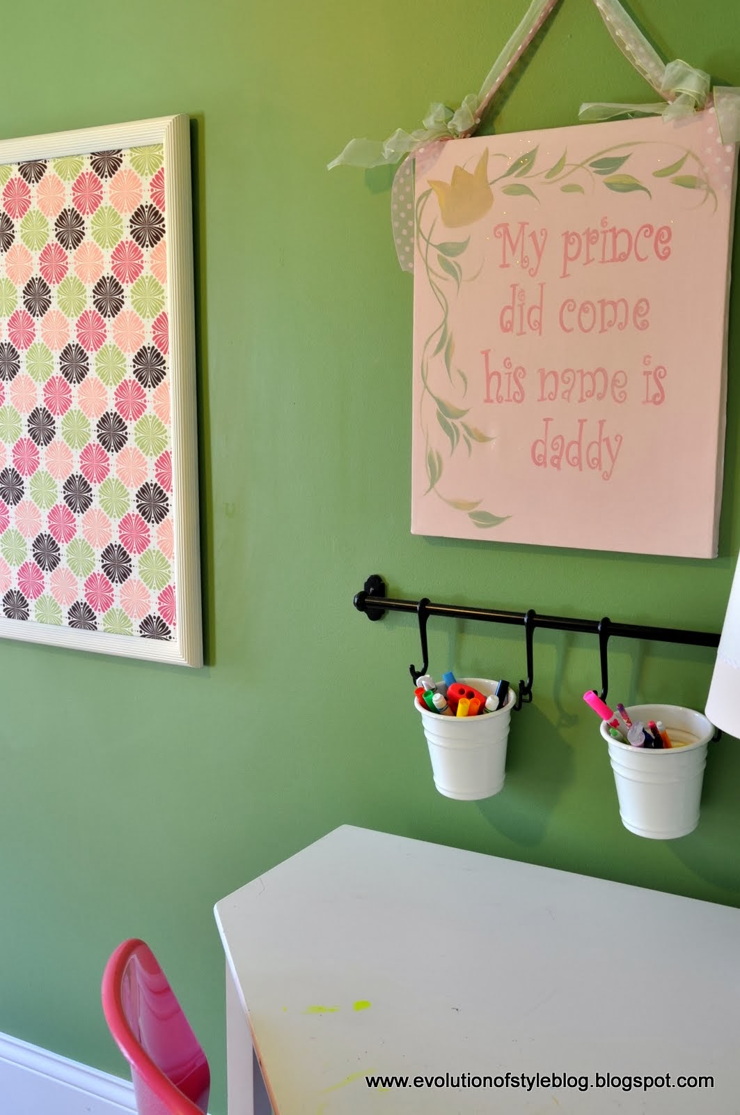 These little wall mounted buckets are a must-have for any kid’s room. Perfect for pens, pencils and markers. But at the rate she hoards collects them, I may need to add some more.