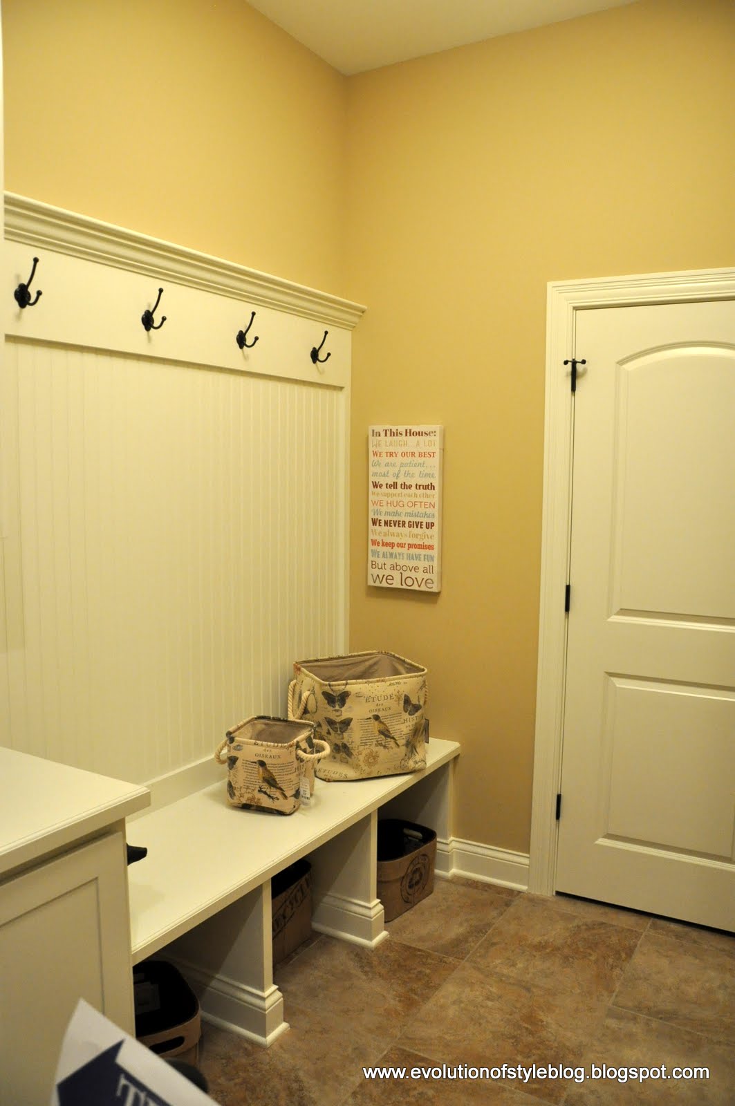 A half bathroom, laundry room and mud room rounded out the main floor. Not sure I’m feeling the woodsy wallpaper in here. What do you think?