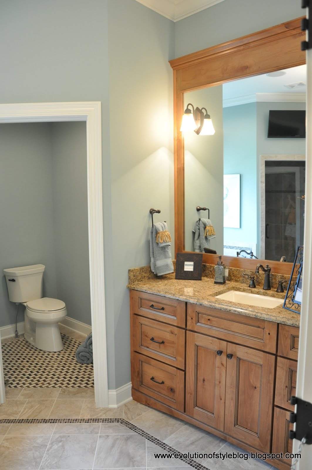 We then made our way to the master suite. I’m sharing the master bathroom, because as you walked in to the master suite, it was located to the right, prior to entering the actual bedroom portion of the room. I didn’t really care for this setup, because if someone was taking a tour of my home, they would encounter the bathroom right off the bat. Just seemed kind of backward to me. Even though it’s a lovely space.