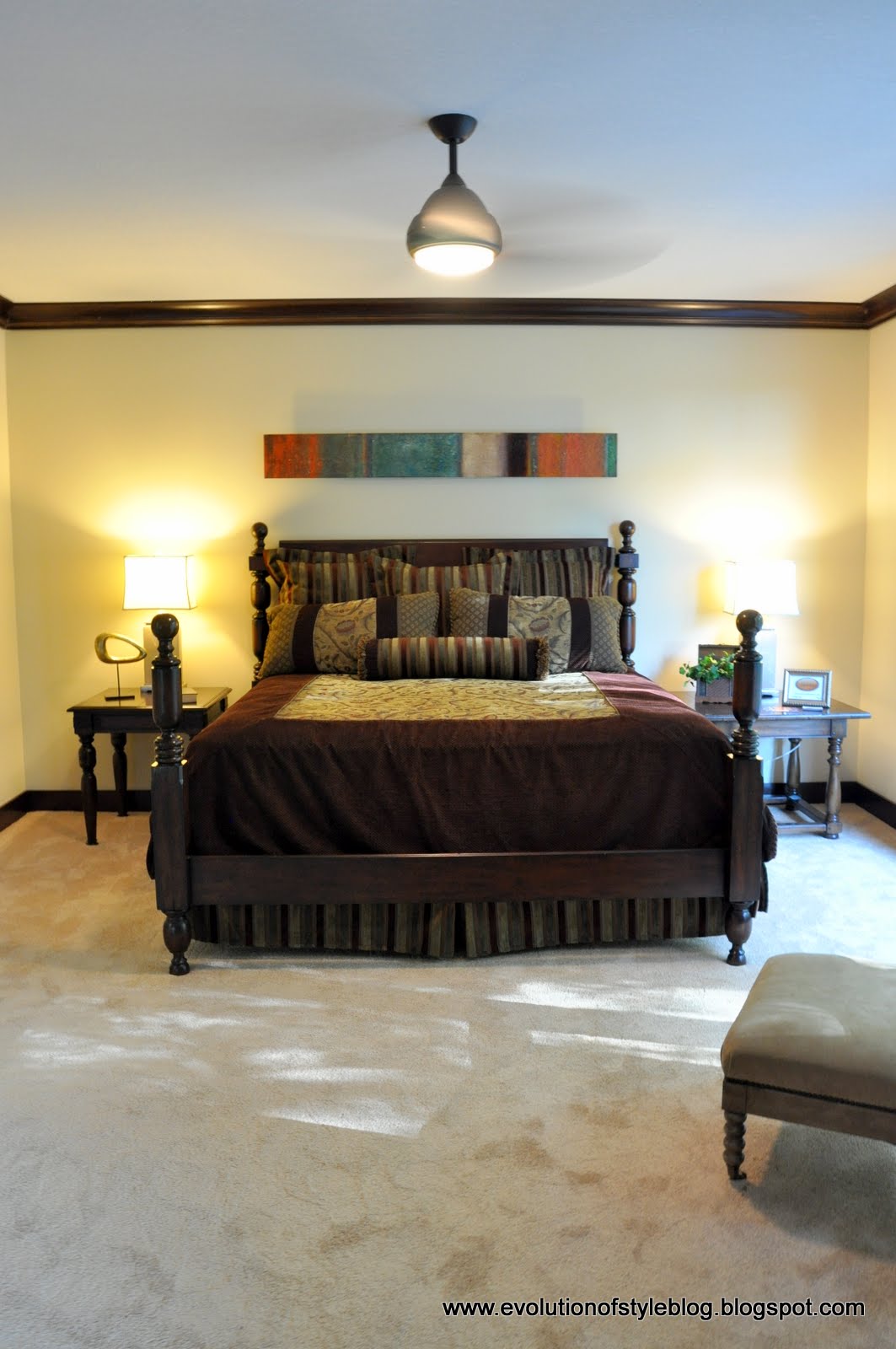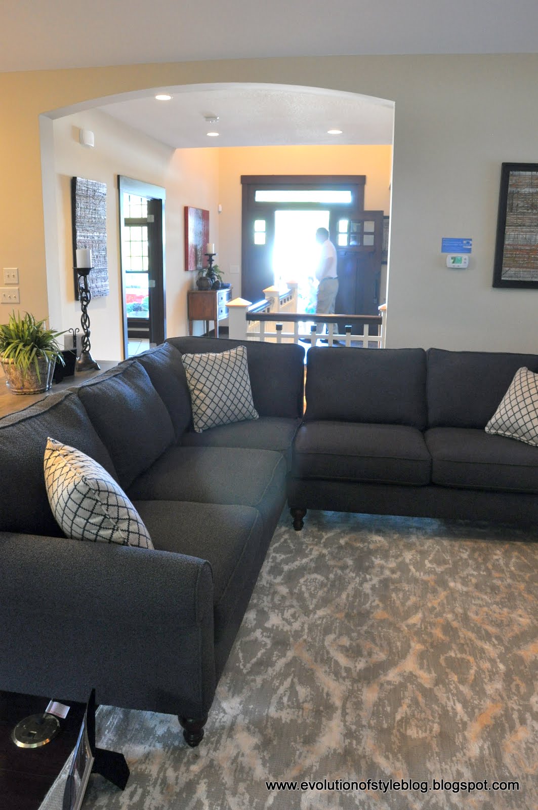This sectional really caught my eye as well. My girlfriend and I agreed that it just looks sturdy, but had great structure and details – love the turned wood feet on it. I could see a family curling up together and watching a movie on this sectional. And the rug is a great accent. It’s not pictured, but there was a swivel chair in this room as well. I am really loving swivel chairs lately – they’re just great for open, multi-purpose spaces.