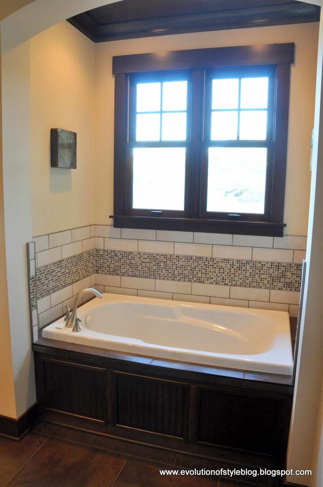 Master bathroom – pretty tub with more beautiful woodwork.
