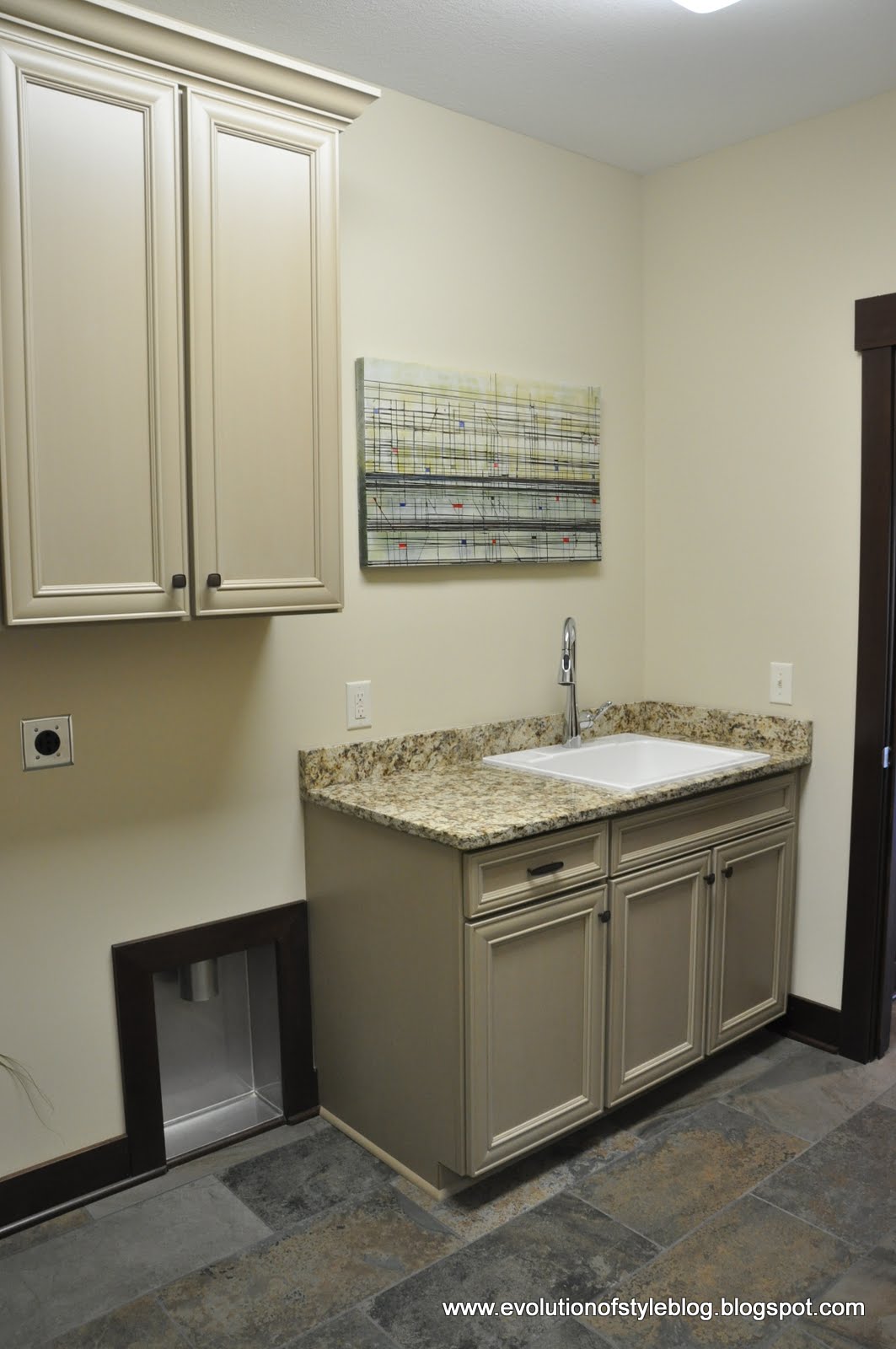 Leading to a cute laundry room space. Great dirt-hiding floors in here too.