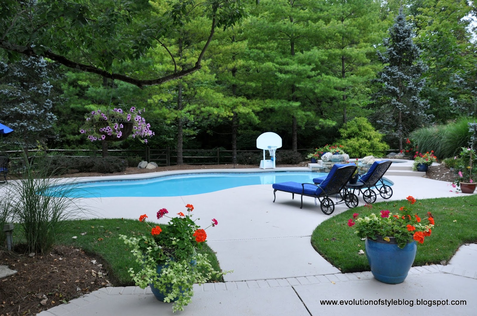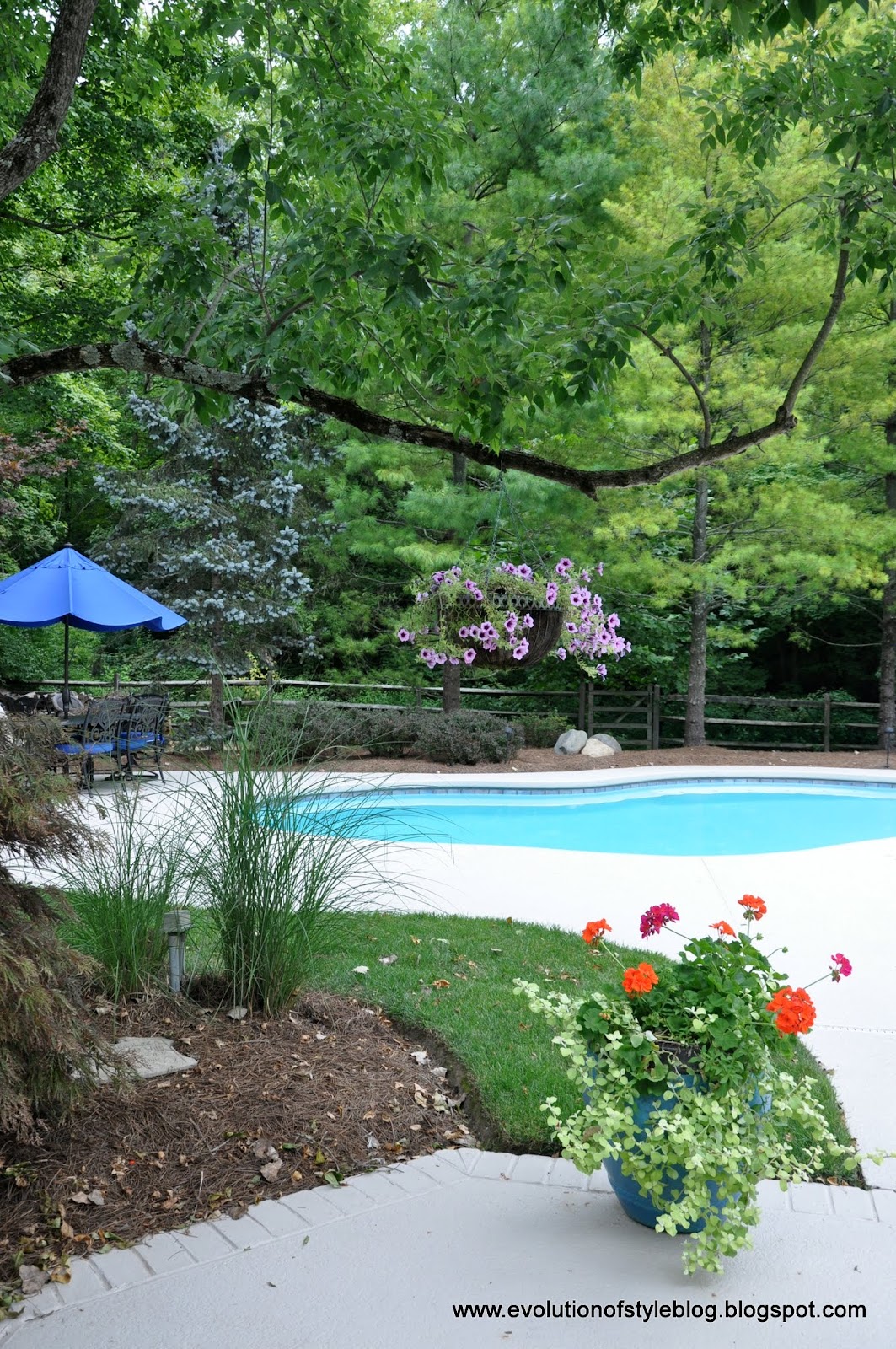 And then from the porch, you can head out to this gorgeous pool. It’s like being on vacation.