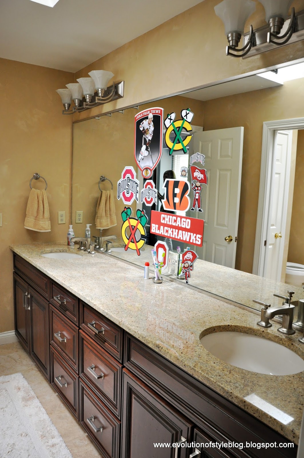 October 7, 2015 at 7:57 pmSuch a beautiful home and so perfectly decorated. That is a wonderful tribute to their daughter – so important for her siblings to see that too….. I would lose a chunk of my bedroom in a minute for that closet ! Love the boys bathroom – GO BUCKS !! O – H …