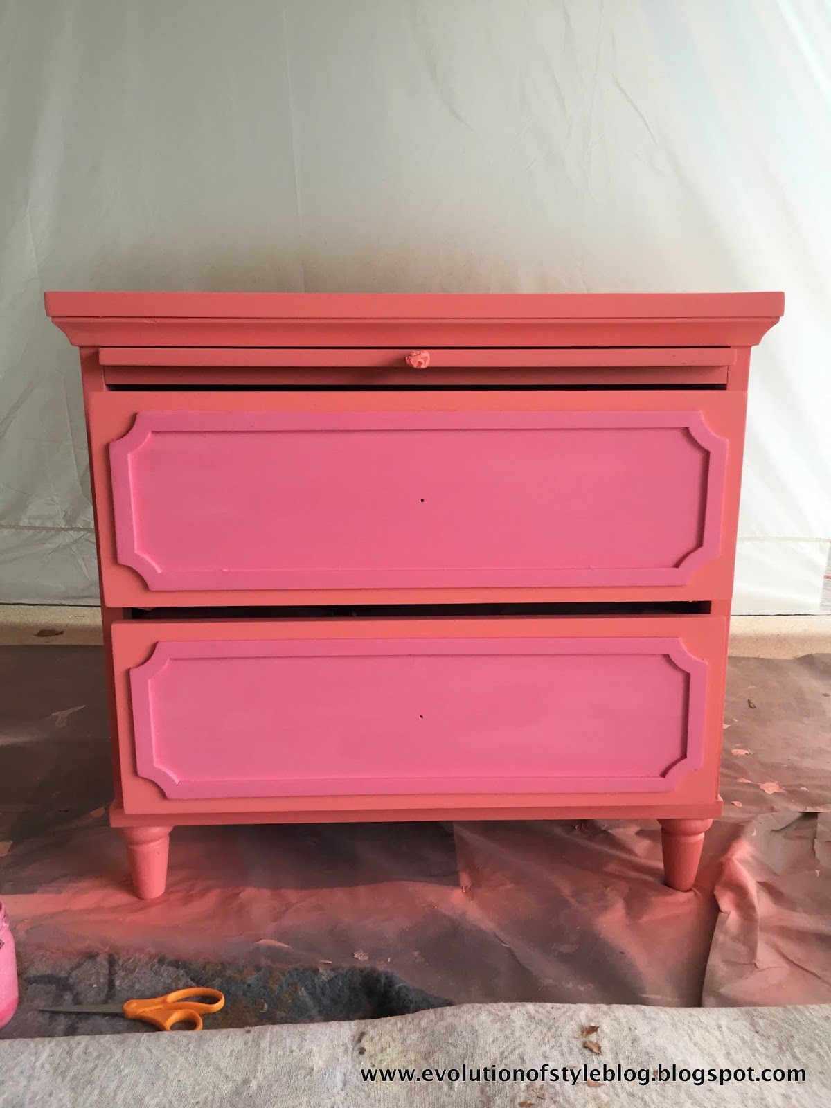 Once dry, I painted the framed area on the drawers in a 1:1 mix of Vivid and Ethereal.