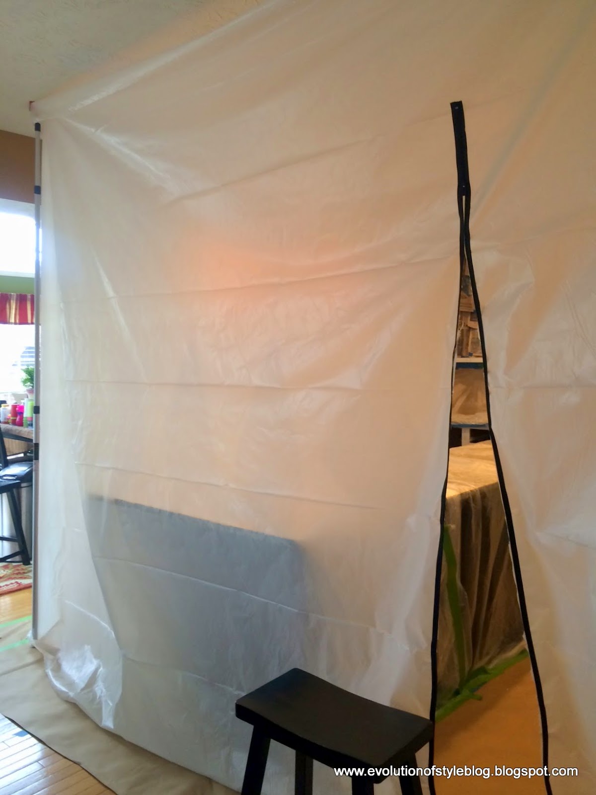 TIP: Tape off the bottom, sides and top of the frame first (newspaper works well for this), and then tape off the back of the inside frame.