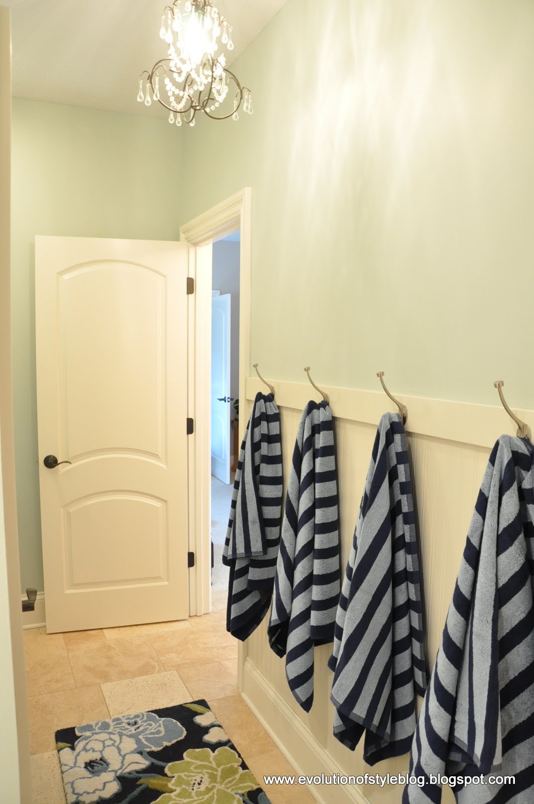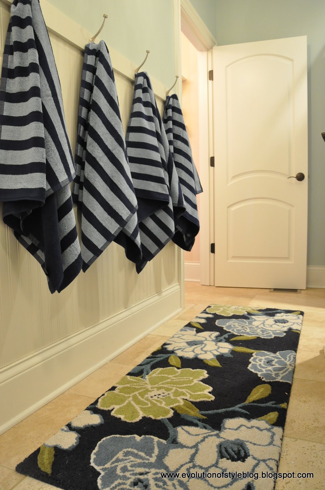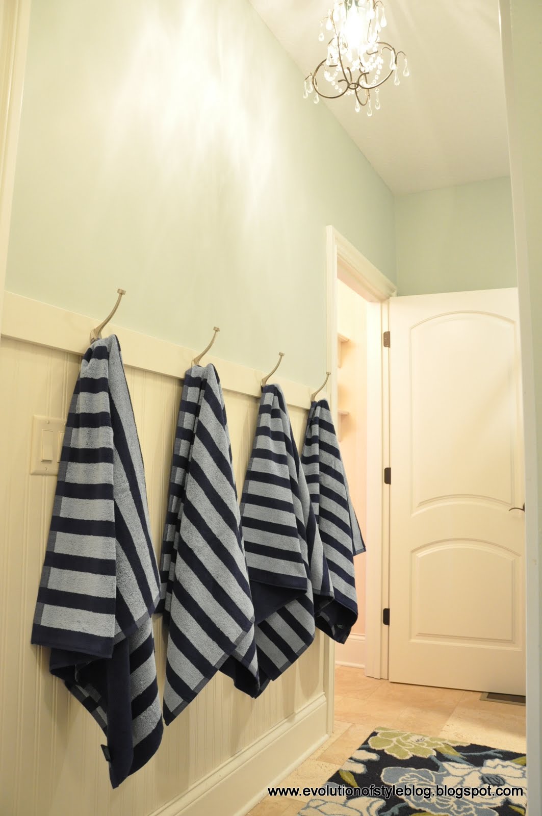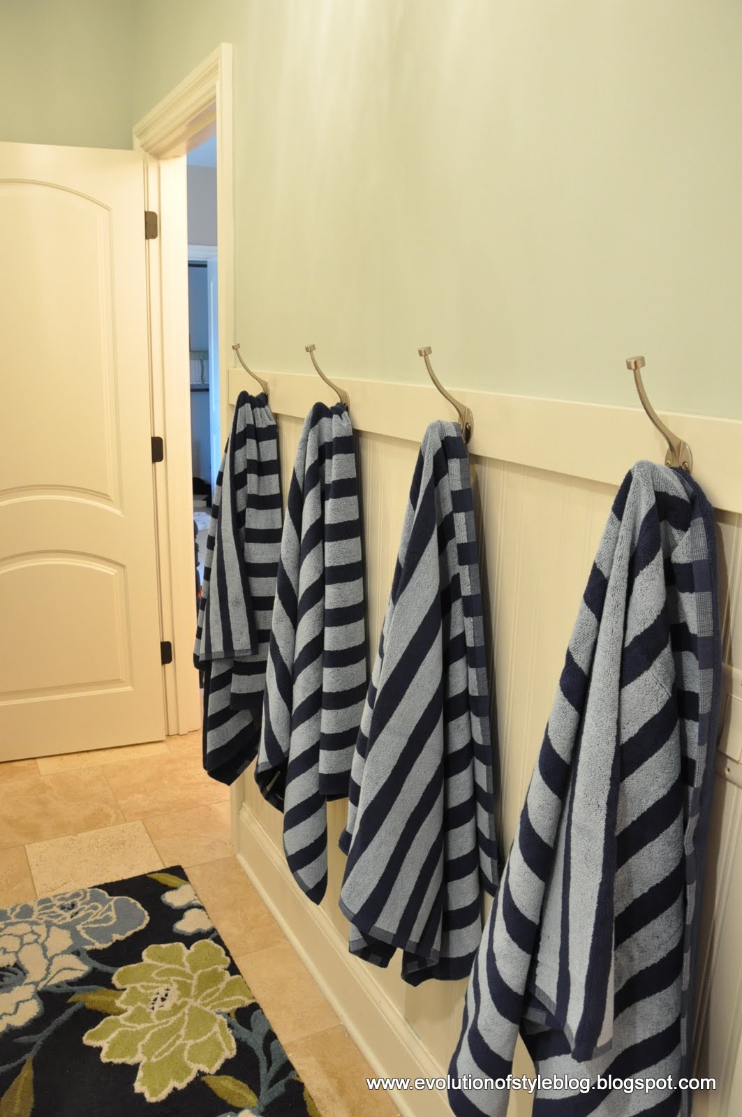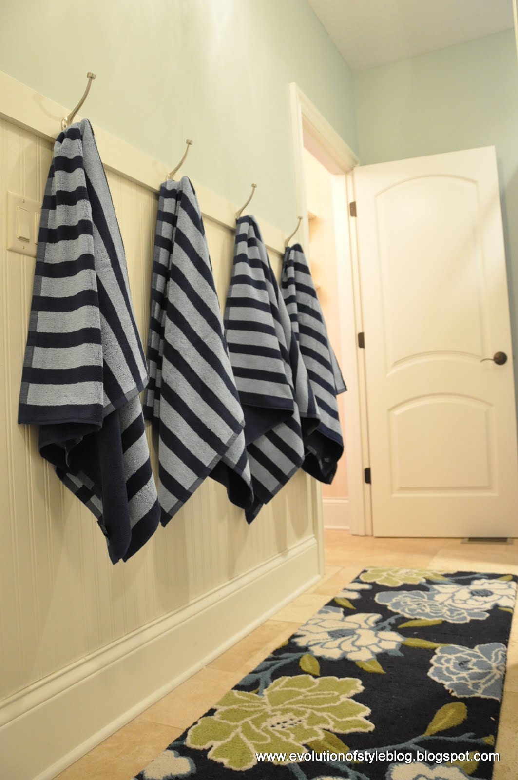 March 6, 2012 at 12:30 pmI love the rug. It makes the room. Good job, and I am sure your kids will hang their towels up every time now.