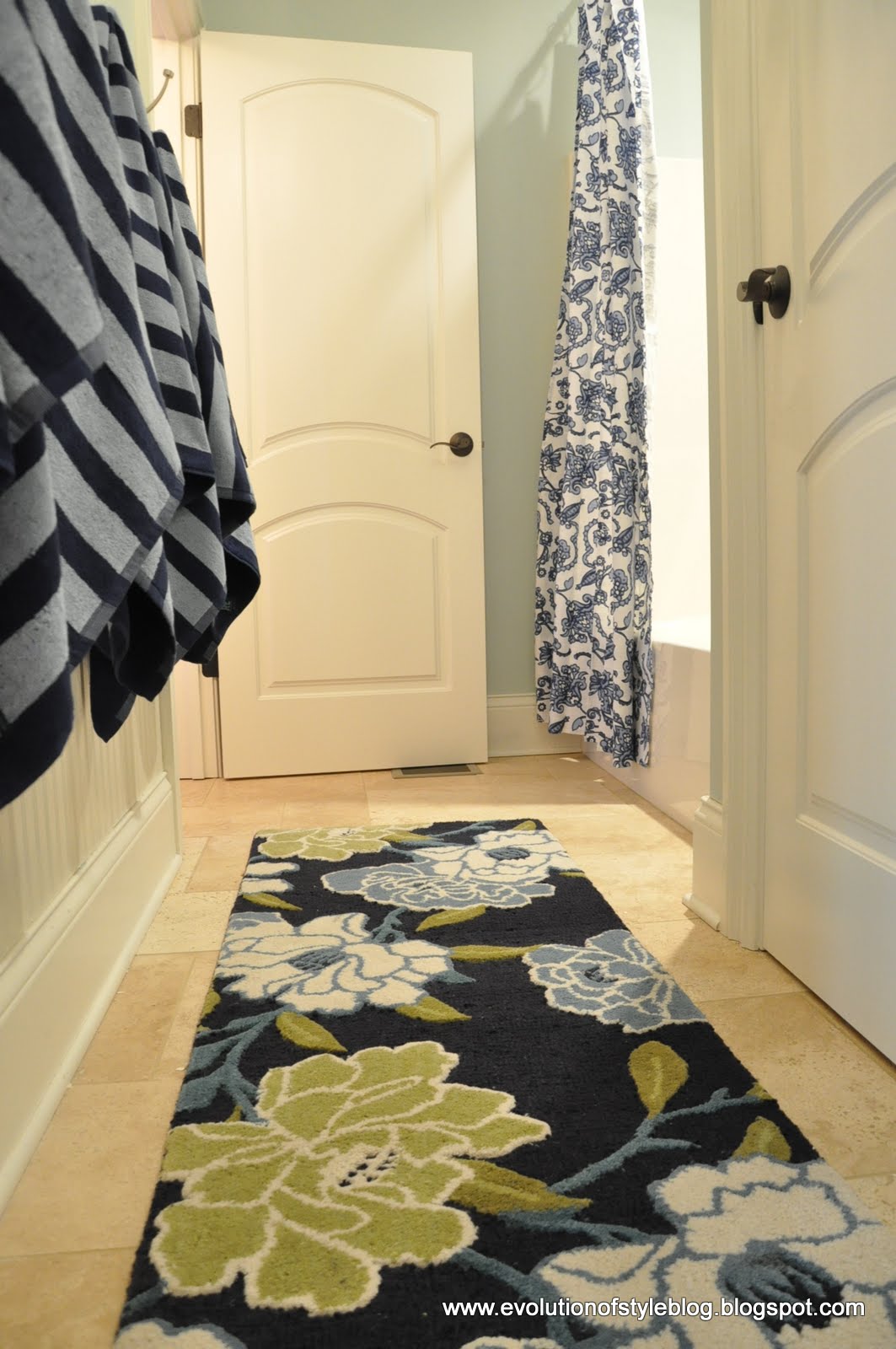 February 28, 2012 at 4:01 pmYour bathroom is beautiful! It looks so clean and refreshing – and I LOVE the rug! I will blame you when my hubby gets mad at me for stopping at TJ Maxx on my way home from work to check out their selection. 🙂 I've been looking for a runner for our new kitchen (progress seen here: http://anexcellentadventure.blogspot.com/)