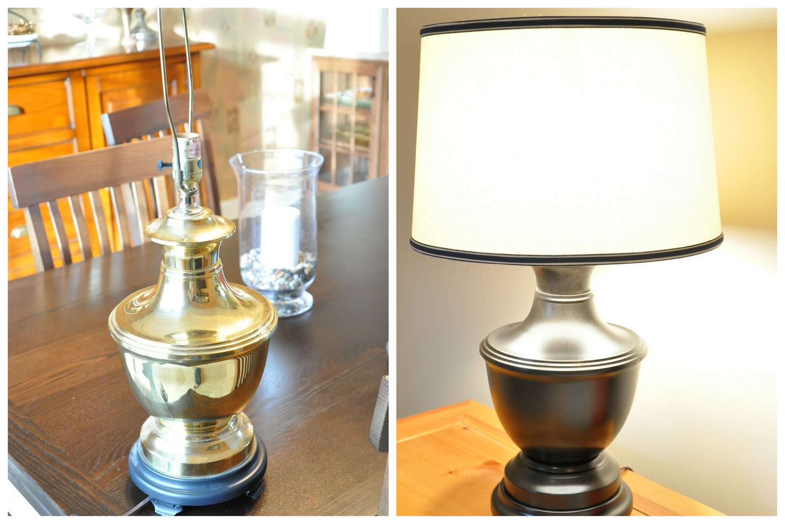 Another brassy babe, but I loved the trophy shape and the loop detail on the sides. And with a little spray paint and a new shade, this is what you get: