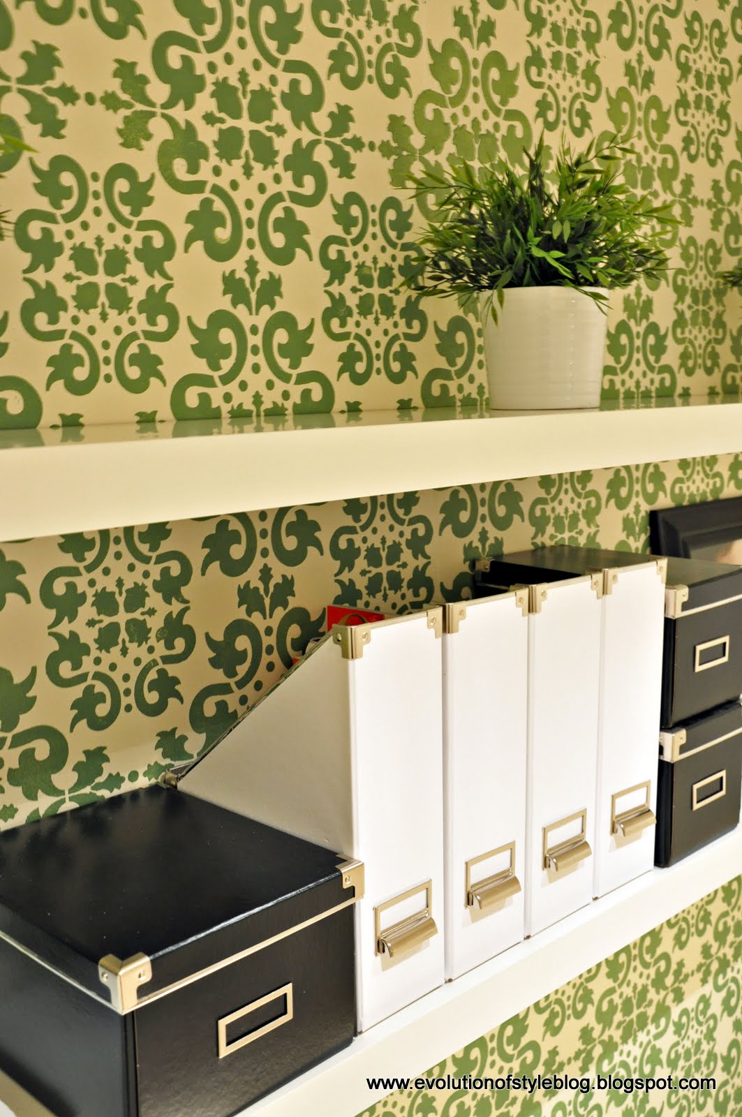 September 27, 2012 at 1:28 amWow, wow! That stenciled wall says: "hey look at me"! So pretty! The shelves couln't be more perfect! Lucky you to have all that space to yourself!