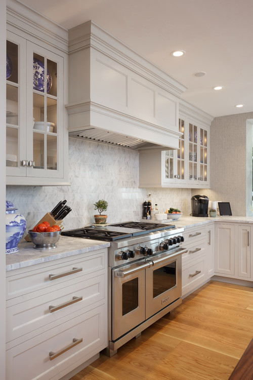 Again with the stunning European kitchens. These cabinets are painted in Hardwick White, and you can see by looking at the walls, that it’s not a white by any means. Again, very subtle and classic, without being white. I think this kitchen really demonstrates what I’m talking about, in that the non-white kitchen cabinet color gives this kitchen a bit more depth and interest. So very elegant.