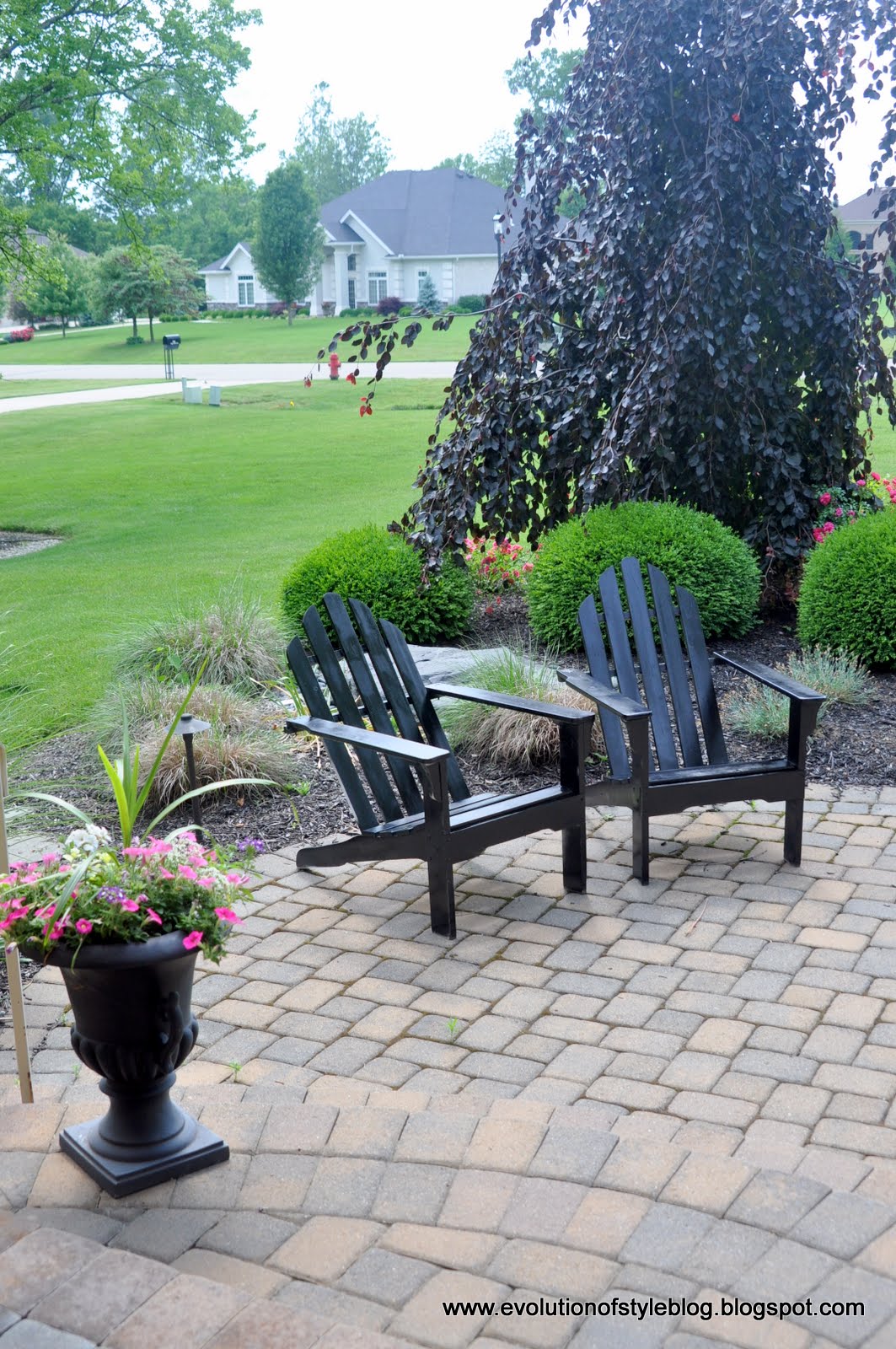 As you approach our front door, you’re greeted with adirondack chairs. I brought these from our old house – they were a Goodwill steal, and I had painted them white. You can’t tell from these photos, but the white was looking a little worn out.