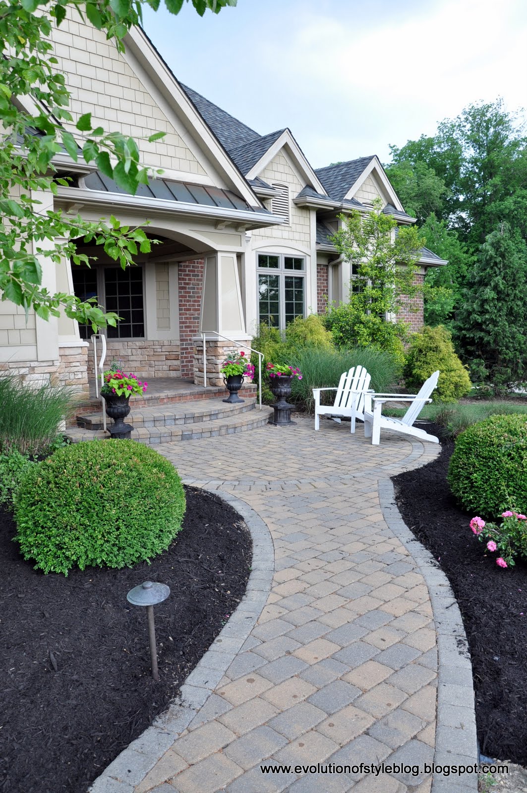 May 29, 2012 at 2:37 pmClassic adirondack chairs are my favorite, love them along your walkway!