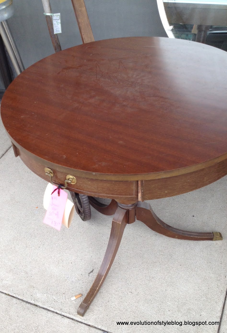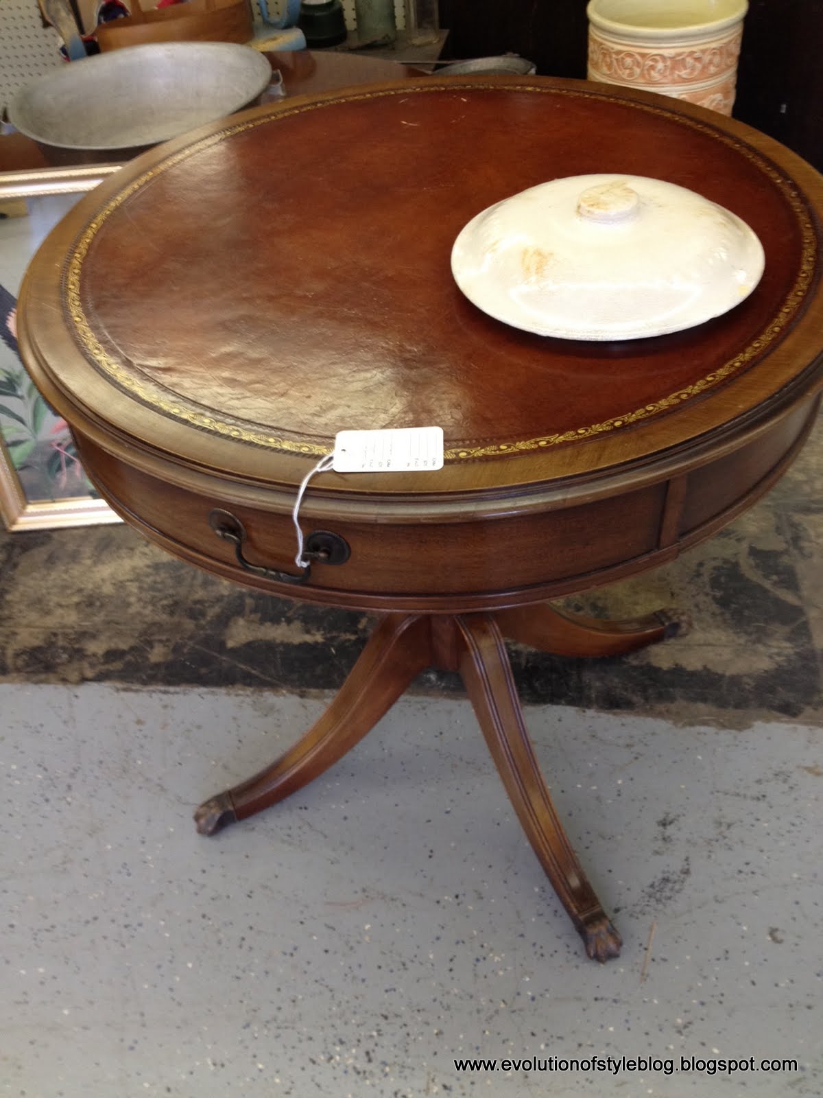 April 17, 2013 at 3:12 pmYes it is soooo true that some consignment shops think they have merchandise that's worth WAY more than it is. However, I was noticing your drum table comparison. One thing you should know is that the table for $30 is veneer and the $100 table has real wood with a leather inlay, making it worth more than the $30 table, probably the reason for the $100 price tag. Of course you probably knew that. A person can't judge on price, it's important to know the value of a piece. Also before you buy a piece of vintage furniture you need to know exactly what you are wanting to do with it. If I were buying a piece to makeover with paint or something, I would choose the $30 table. I would not buy the $100 piece unless I intended to keep it just as it is. Refinishing it would drop the value immediately. Anyway, just my humble opinion, not that you asked for it. Such a great post. I love thrifting. It is so thrilling.